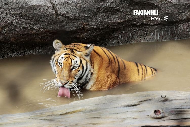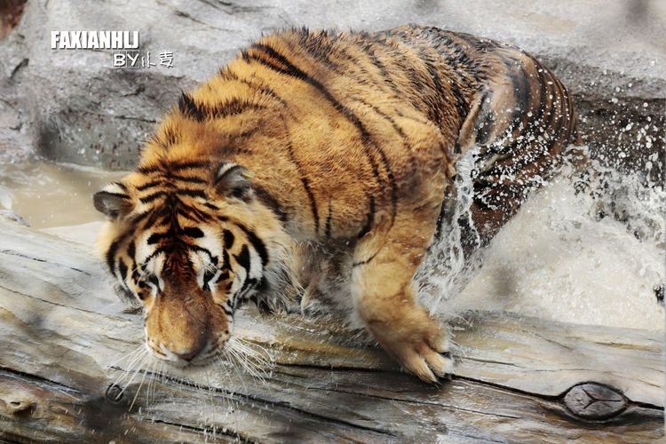 瞧,把这只东北虎热的,干脆跳水里解暑去了。